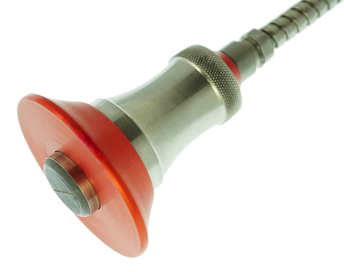Отличительная особенность данных преобразователей заключается в уникальном корпусе со встроенным защищенным кабелем. На корпус устанавливается теплоотводящая оснастка, которая также помогает защитить руки оператора от контакта с поверхностью контроля.