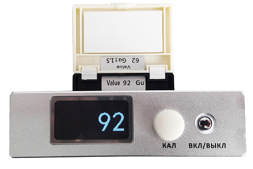 Прибор измеряет блеск на плоских поверхностях с возможностью связи с компьютером для передачи данных статистики, печати и анализа данных через USB-кабель и ПО. Программное обеспечение позволяет производить вычисление статистики из серии измерений: max и min значения, среднее значение, среднеквадратическое отклонение (σ). Режим замеров: сканирование (непрерывное измерение при перемещении прибора по поверхности без отрыва от неё) для быстрого измерения больших площадей поверхности с возможностью фиксации результата замера на дисплее, а также специальный режим контроля качества с установкой нижней и верхней границ допустимого диапазона измерений блеска. Уникальная функция – внутри прибора имеется температурный датчик: программа автоматически вводит поправочный коэффициент к значению блеска в зависимости от температуры, что позволяет получить максимально точный результат измерения. Управление всеми функциями прибора единой клавишей. Поставляется в комплекте с защитной крышкой-держателем, которая используется для хранения и калибровки блескомера на закреплённой в держателе мере блеска. В крышку-держатель встроена одинарная мера блеска (чёрное полированное стекло). Калибровка осуществляется внутри крышки-держателя автоматически по нажатию кнопки на приборе. Самостоятельная калибровка блескомера пользователем возможна на мере блеска из комплектации прибора или любой другой, в т. ч. от других изготовителей. Прибор изготавливается в прочном алюминиевом корпусе: стойкий к ударам, коррозии, легко очищается от производственной грязи и запылений.