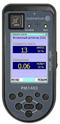 встроенный сцинтилляционный спектрометрический CsI(TI) и внешний блок детектирования (БД) на выбор |